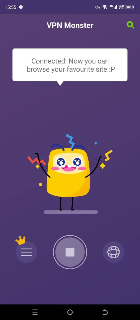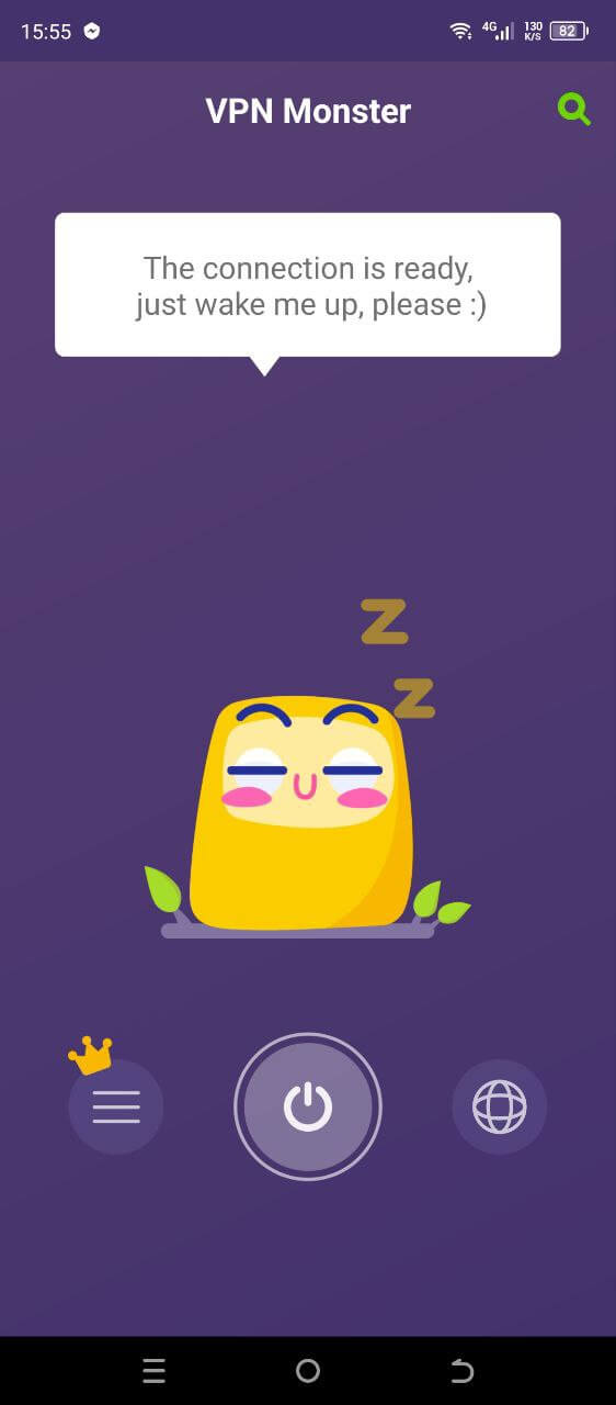 В отличие от других подобных сервисов, в VPN Monster не нужна регистрация. Нажмите на большую кнопку включения для запуска VPN.