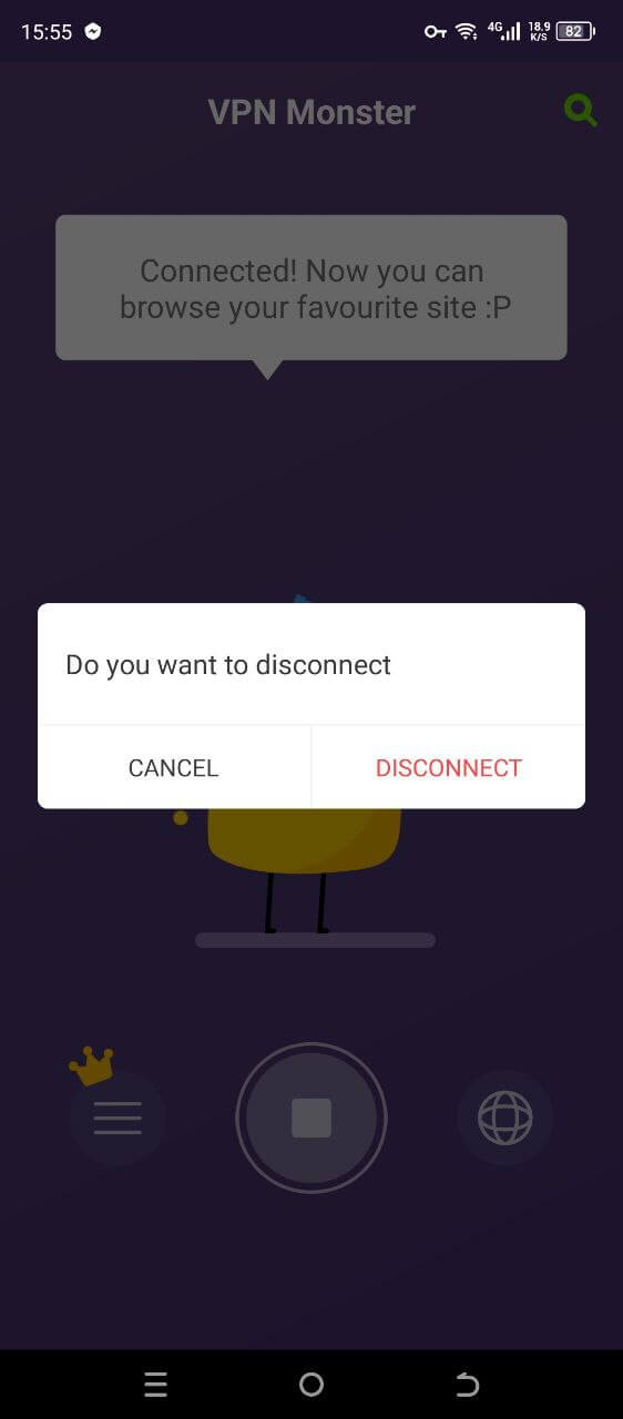 Для выключения VPN повторно нажмите на кнопку подключения, просмотрите рекламу и подтвердите разъединение, нажав на клавишу Disconnect.