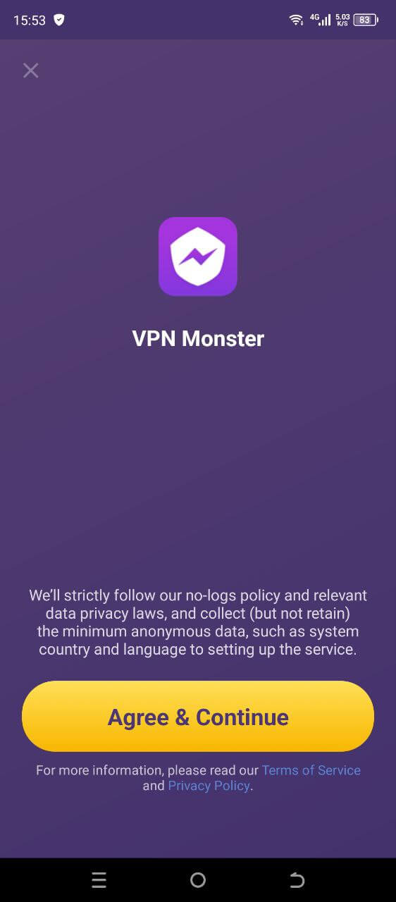 Для того чтобы установить приложение VPN Monster, вам необходимо перейти в магазин приложений GooglePlay или посетить официальный сайт сервиса. Сайт заблокирован в России, поэтому для доступа к нему потребуется сторонний VPN-сервис. Скачайте приложение, оно появится на главном экране смартфона. Запустите его и при первичном включении будет предложено согласиться с правилами использования программы.